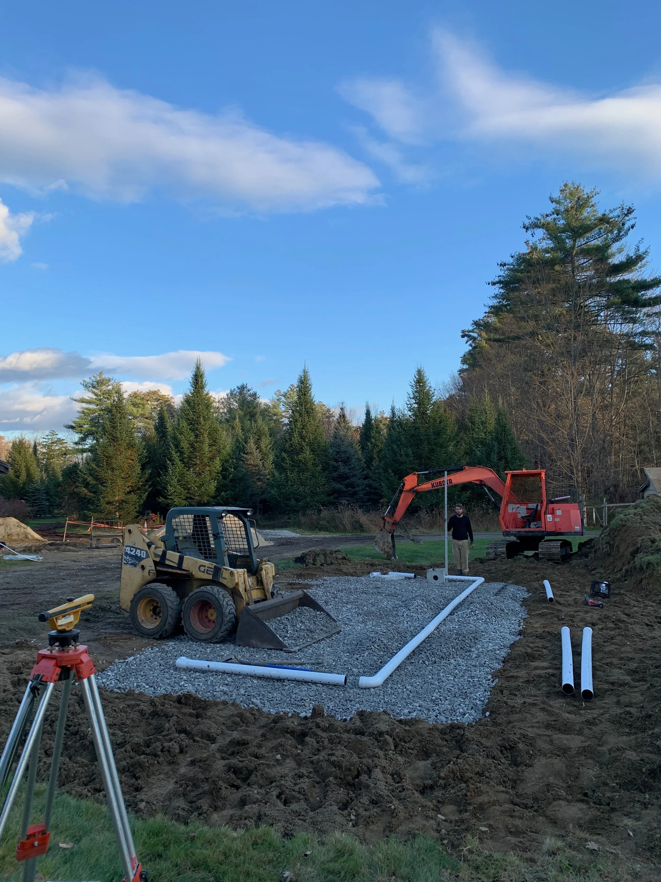 Diggers helped transform a farm into a community center and cafe by creating a drainage plan, parking lot, septic system, and water connection for the cafe. We also helped build a yurt, a sauna, a performance stage, and pizza oven.